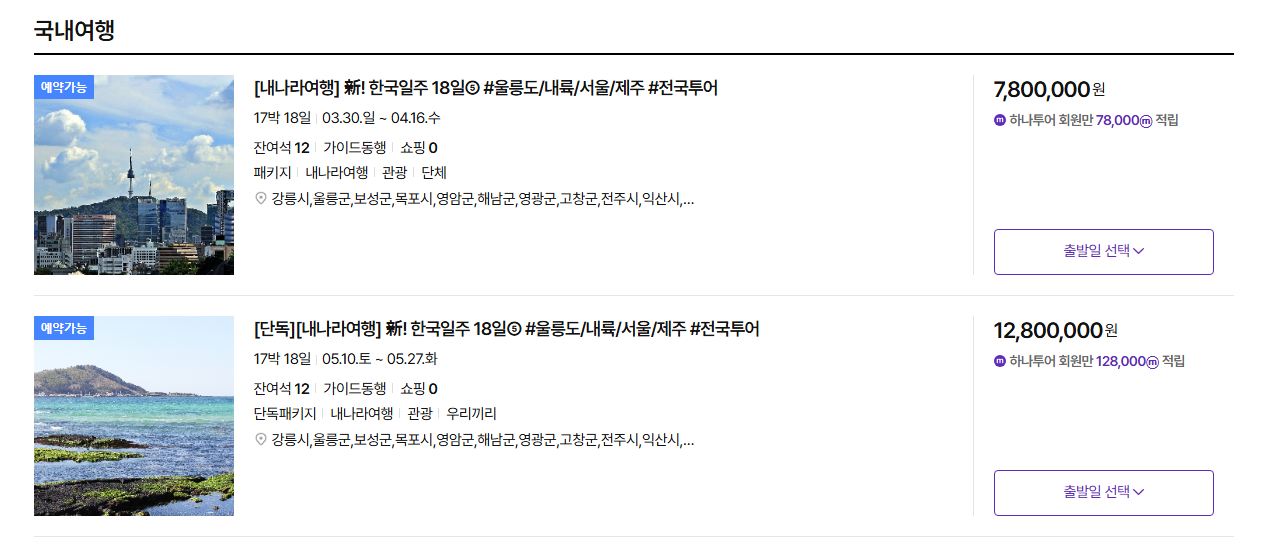 잇따른 비행기 안전 소식, 해외여행이 불안하신가요? 바로 하나투어에서 야심차게 출시한 '한국일주 18일' 패키지가 나왔다는데 여행에 진심이신분들에게는 희소식이 아닐 수 없는데요!