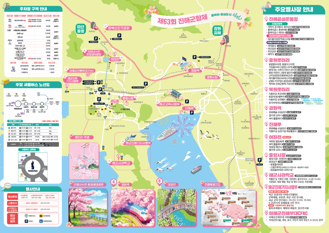 💡 TIP: 축제 기간 동안 경화역, 진해역, 북원로터리를 순환하는 무료 셔틀버스도 운행돼요! 🚍