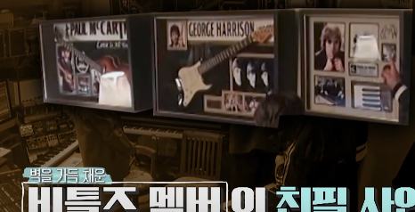 그의 작업실 벽면에는 존 레논, 링고 스타, 조지 해리슨, 폴 매카트니 등 비틀즈 멤버 전원의 사인이 담긴 악기와 사진들이 전시돼 있어 시청자들의 시선을 사로잡았죠.