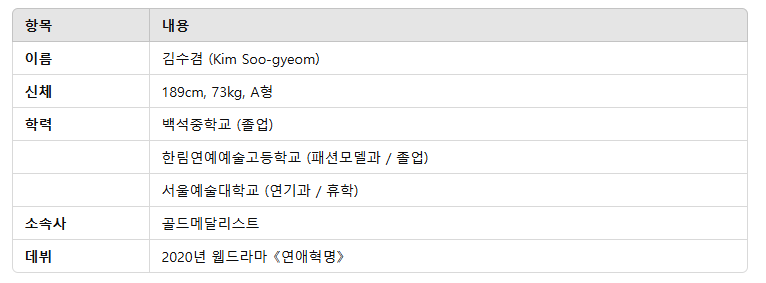 김수겸은 모델 출신 배우로, 다양한 작품에서 활약하며 주목받고 있는 신예 배우입니다.