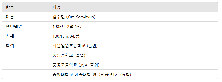 1. 김수현 프로필 : 1988년 2월 16일